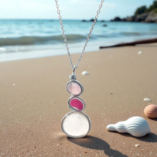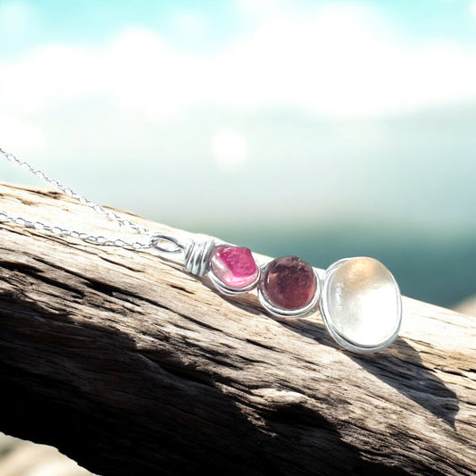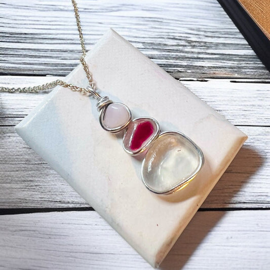 Rare Pink Three Piece Seaham Sea Glass Pendant