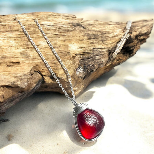 Rare Red Seaham Sea Glass Bubble Pendant