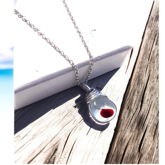 Deep Red Dot Seaham Sea Glass Multi Tone Pendant