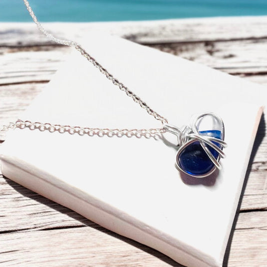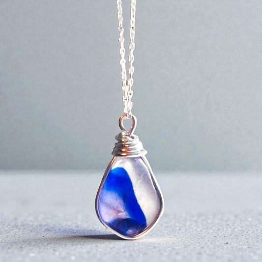 Deep Blue and Green Seaham Sea Glass Multi Pendant