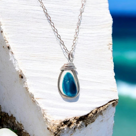 Blue and White Seaham Sea Glass Multi Pendant