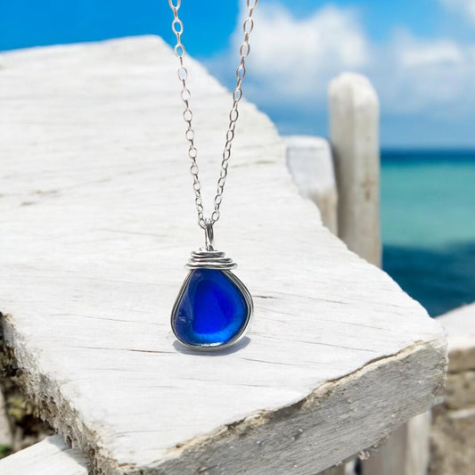 Deep Blue Seaham Sea Glass Multi Pendant