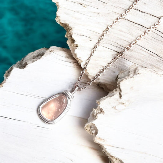 Small Rare Pale Pink/Peach Shade Sea Glass Pendant