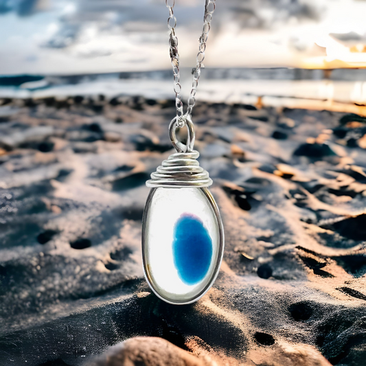 Lovely Blue with Pink Spot Seaham Sea Glass Multi Pendant