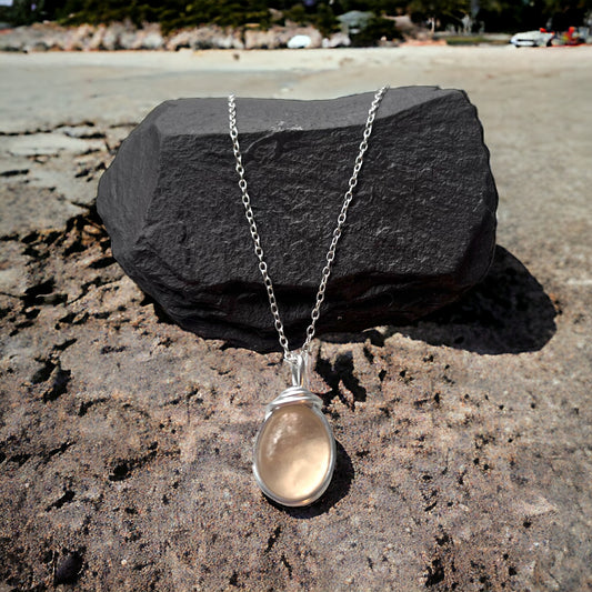 Rare Pale Pink/Peach Shade Sea Glass Pendant