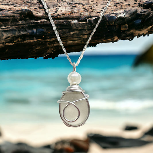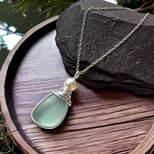 Devon Sea Glass and Glass Pearl Pendant
