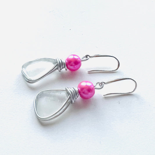 Devon Sea Glass & Pink Bead Earrings