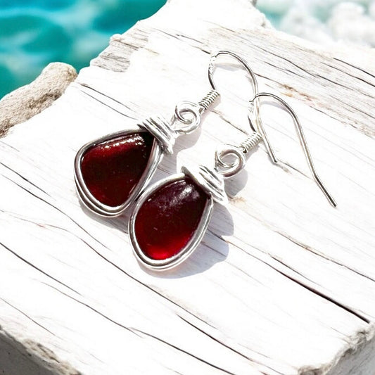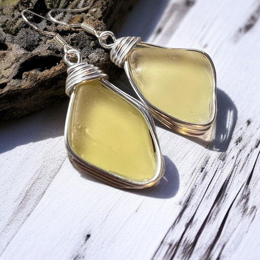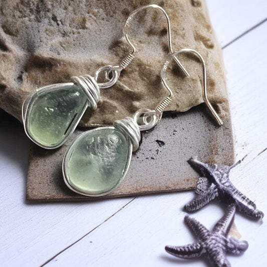 Sea Glass & Pearl Glass Bead Long Drop Earrings