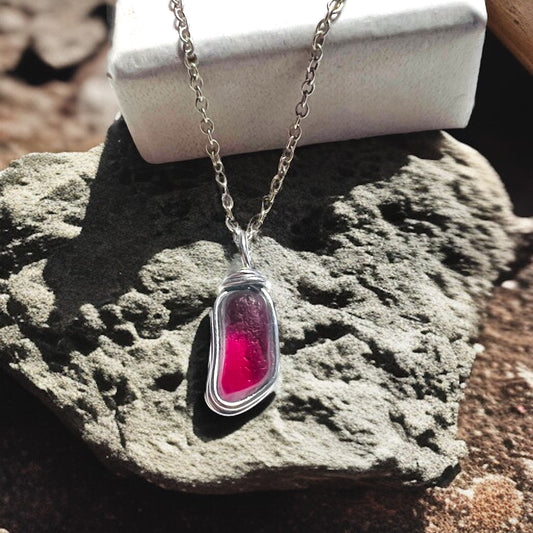 Very Rare Red Seaham Sea Glass Multi Tone Pendant