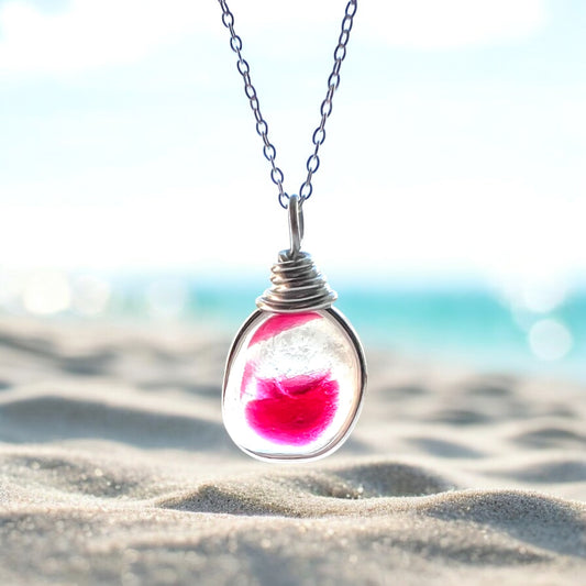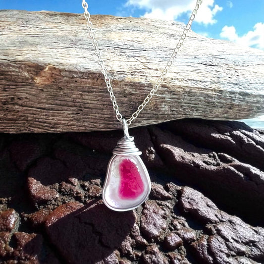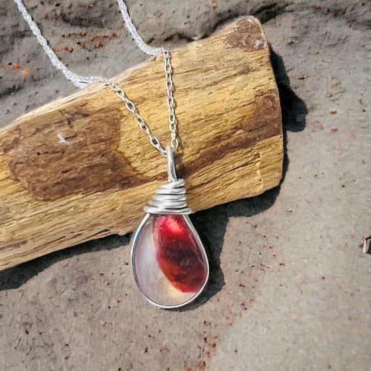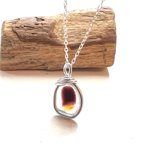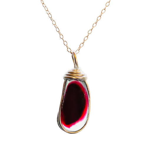 Rare White & Red Seaham Sea Glass Multi Pendant