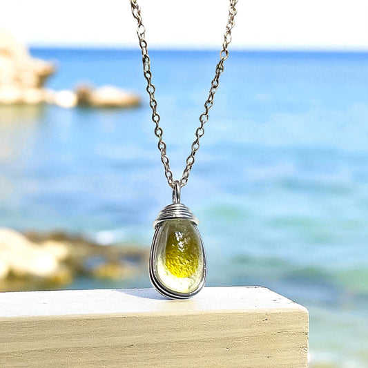 Pale Yellow and White Seaham Sea Glass Multi Pendant