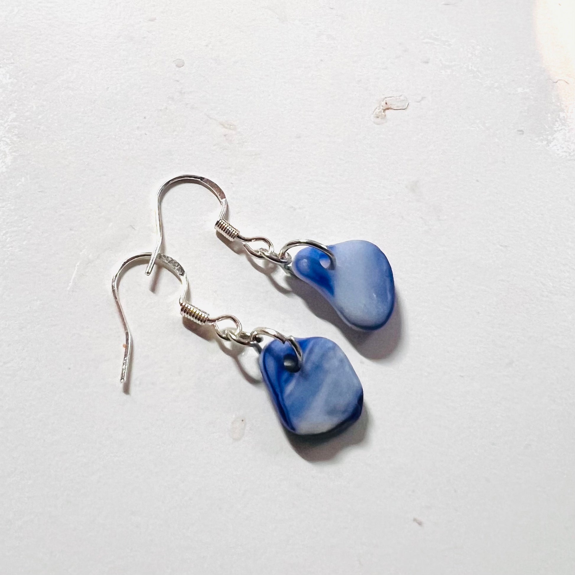 Canary Island Milky Sea Glass Earrings on Sterling Silver Hooks.