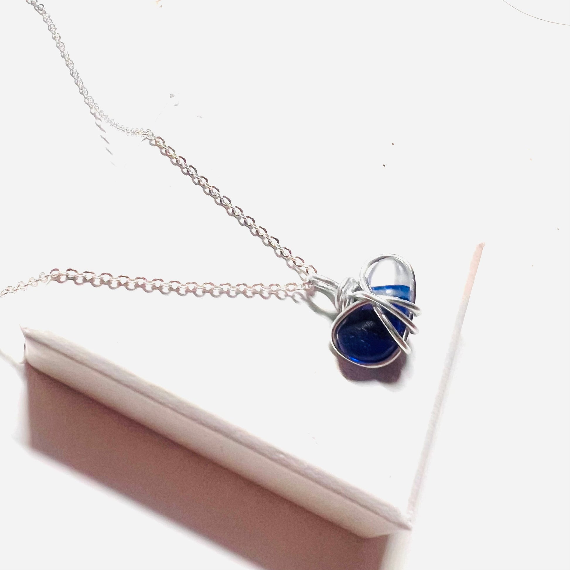 Seaham Sea Glass Blue & White Pendant on a 20” Sterling Silver chain.