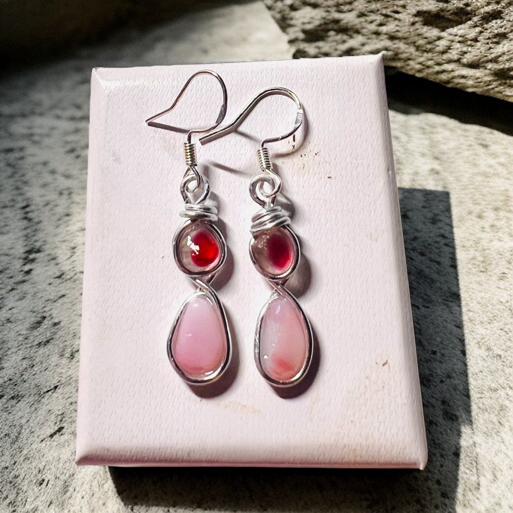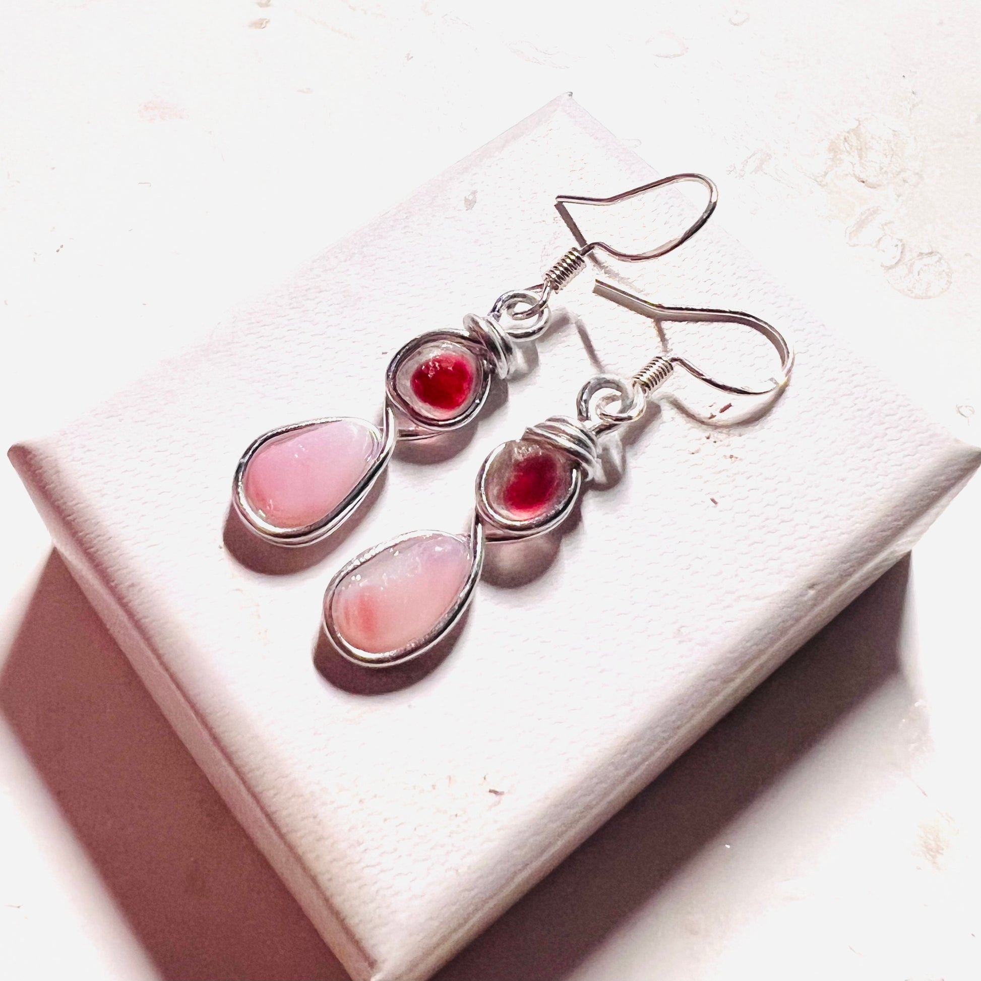 Beautiful Pink Sea Glass Drop Earrings on Sterling Silver Hooks.