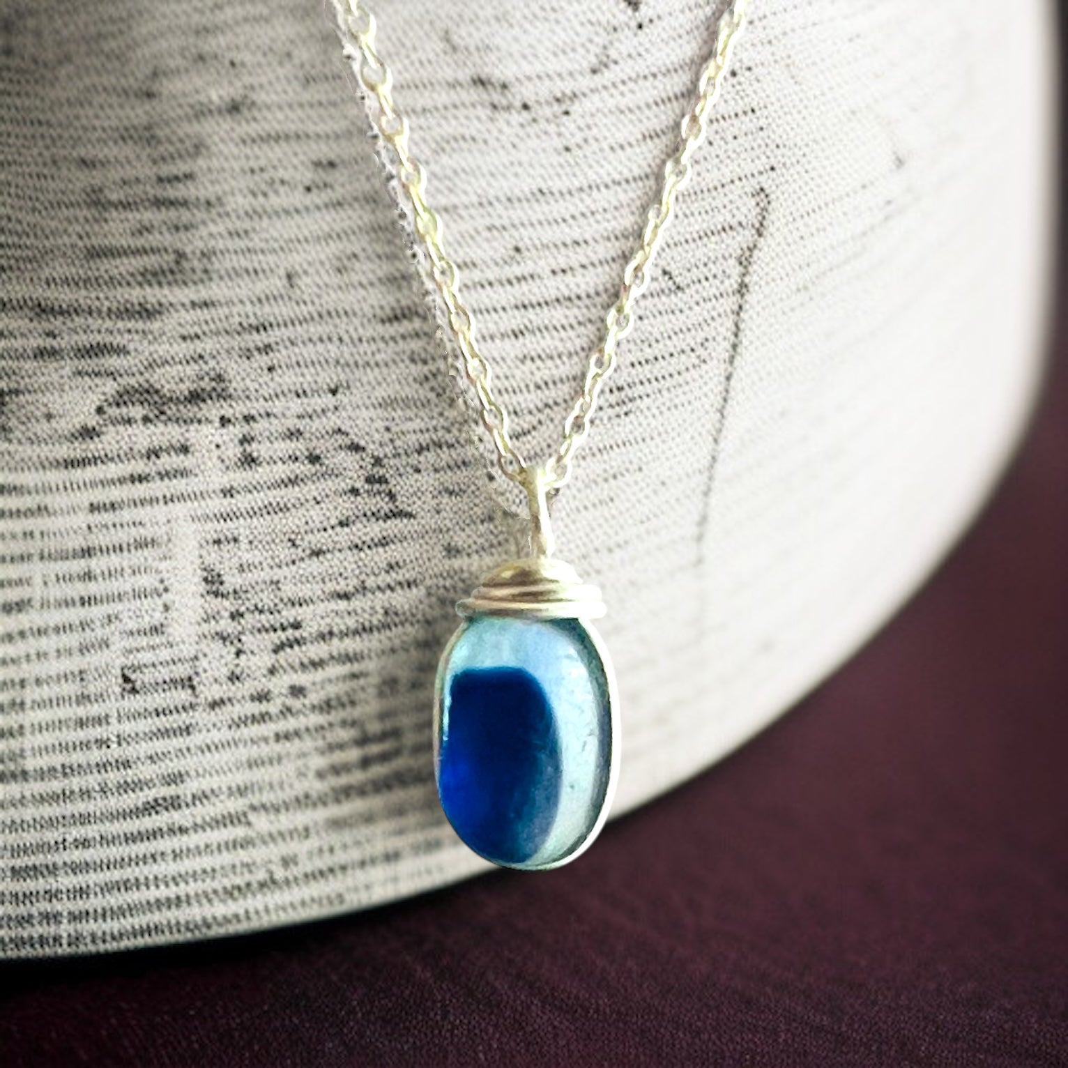 Seaham Sea Glass Blue & Pendant on a 18” Sterling Silver chain.