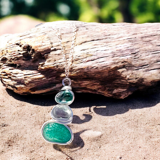 Turquoise Green Seaham Sea Glass Jewellery Set