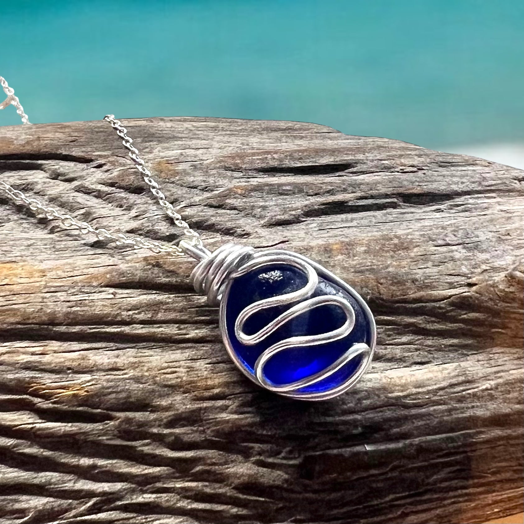 Cobalt Blue Seaham Sea Glass Waves Pendant