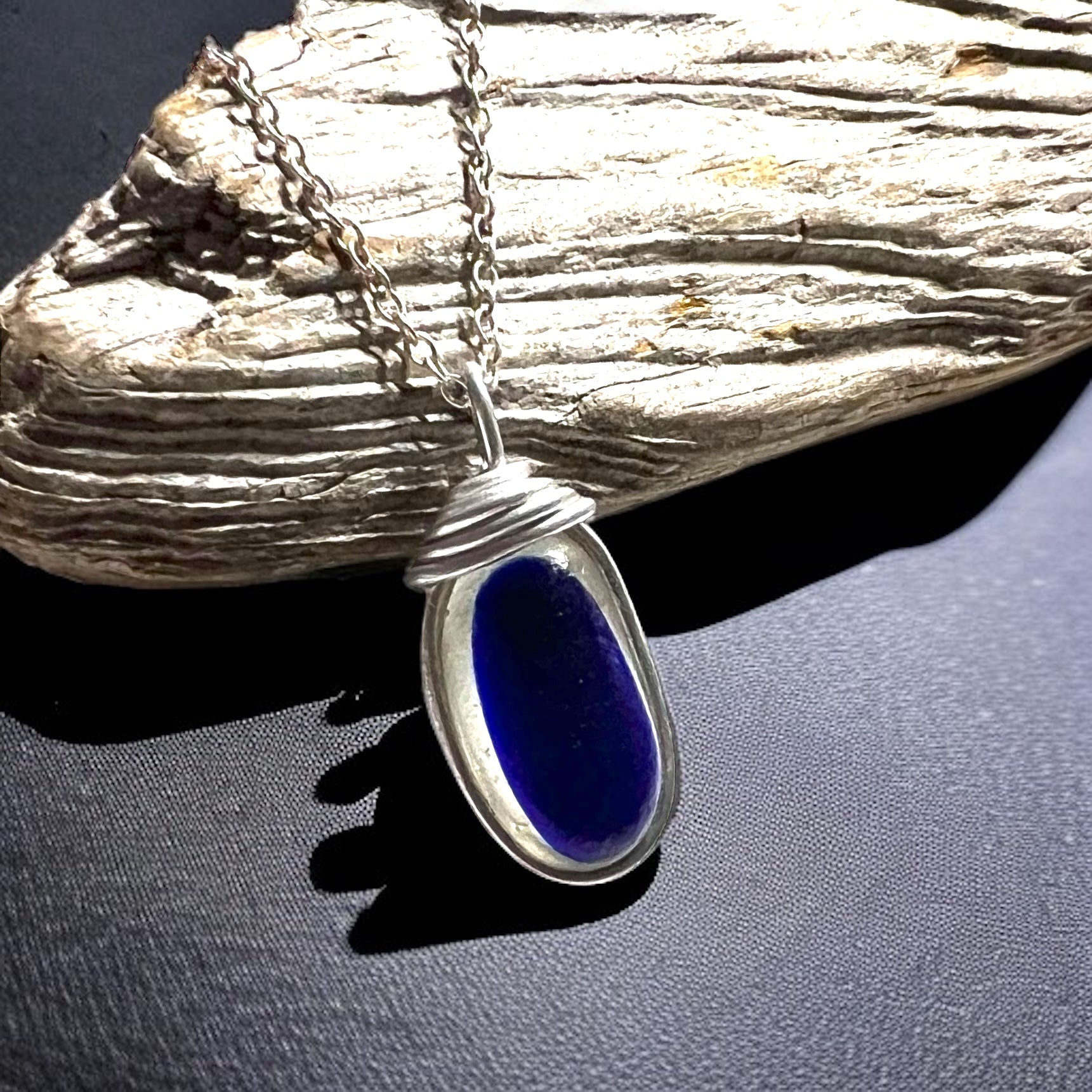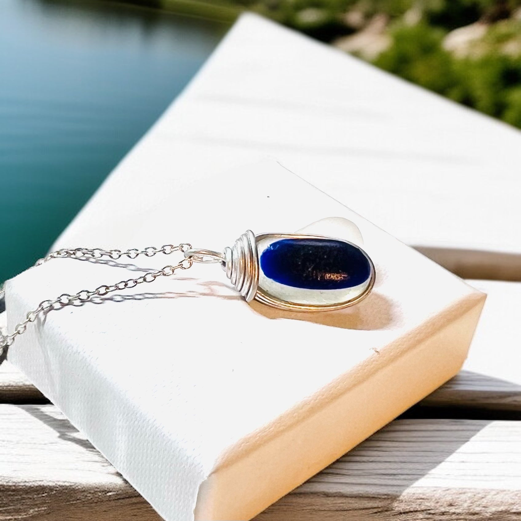 Seaham Sea Glass Blue & Pink Pendant on a 20” Sterling Silver chain.