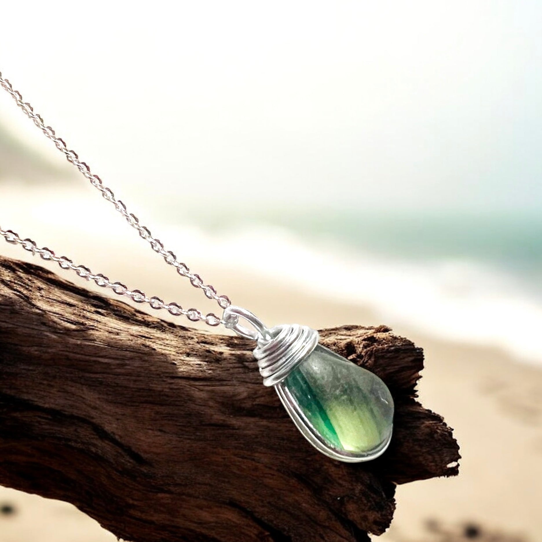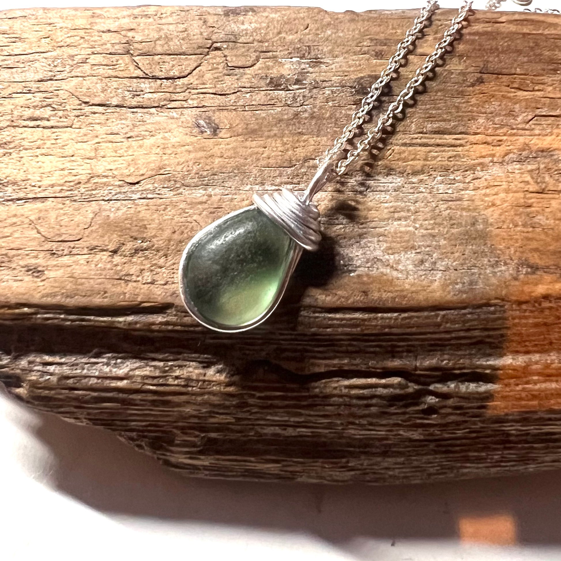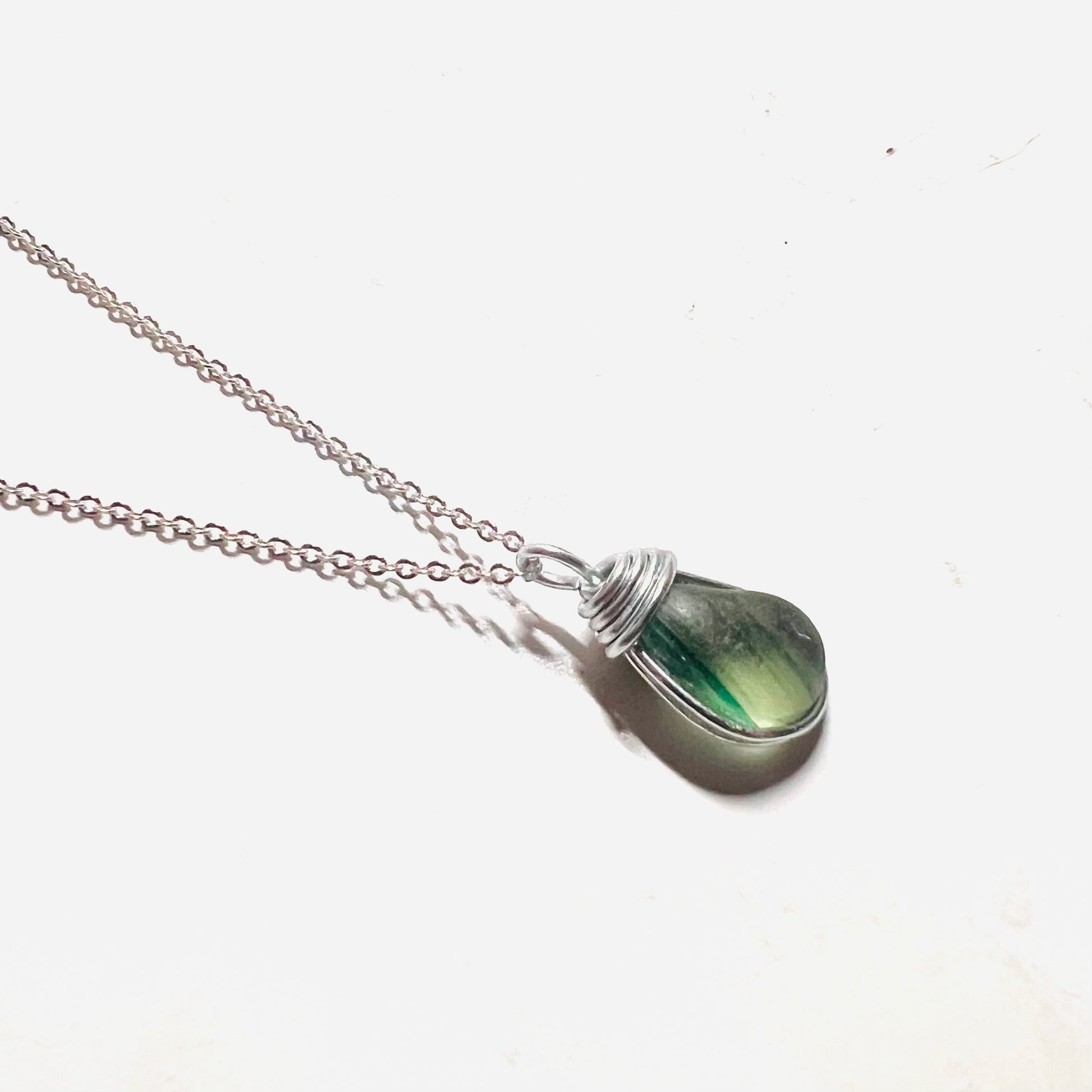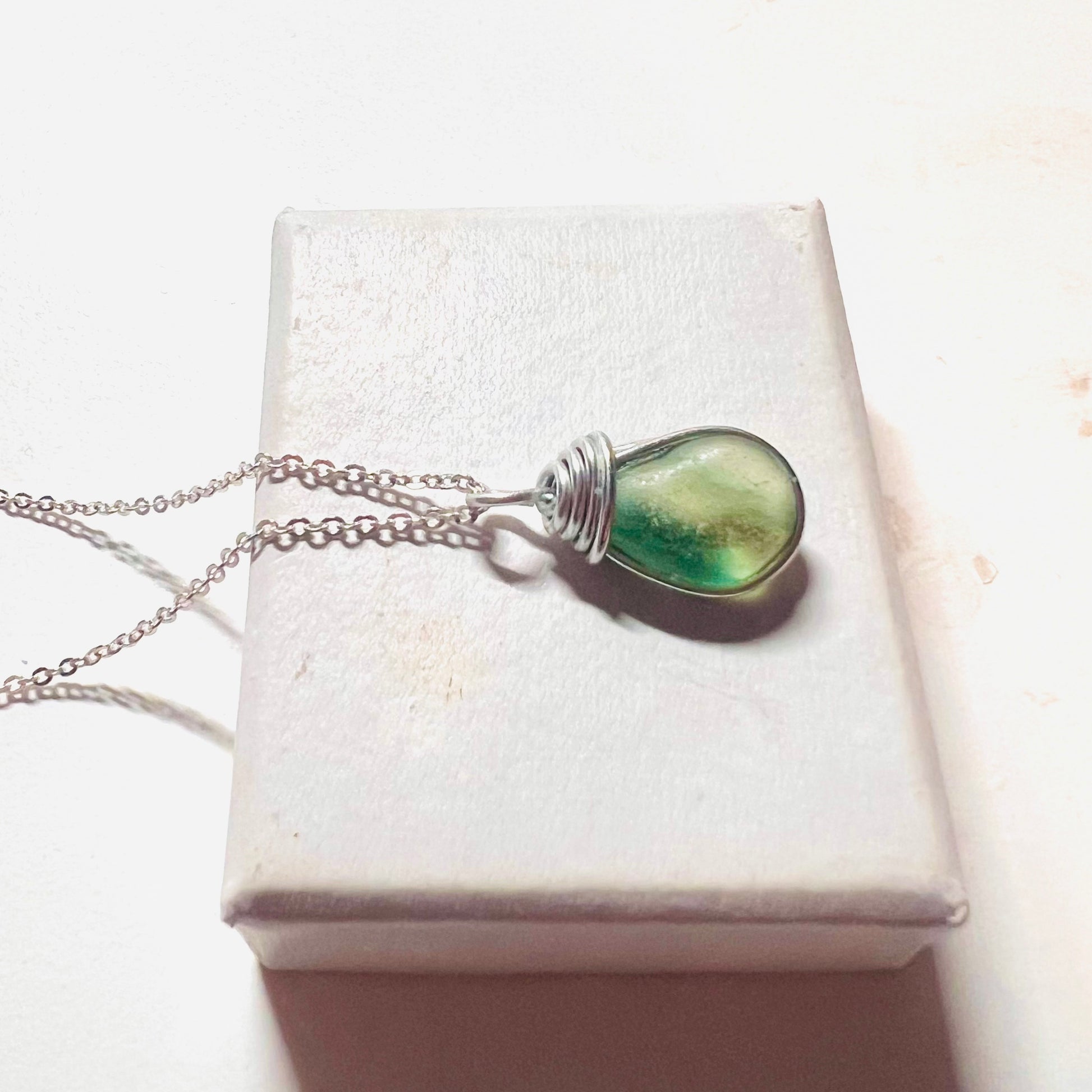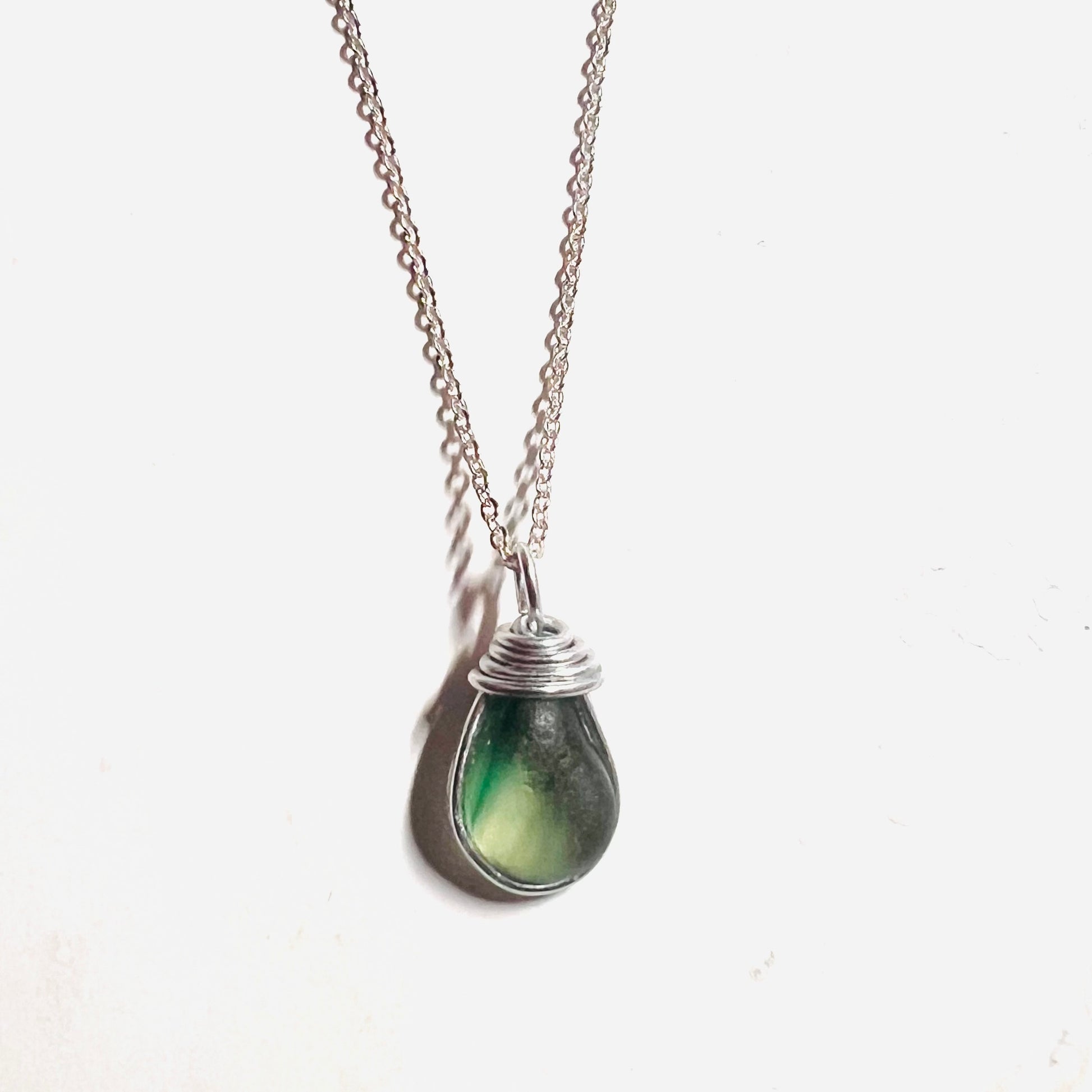 Seaham Sea Glass Blue Pendant on an 18” Sterling Silver chain.
