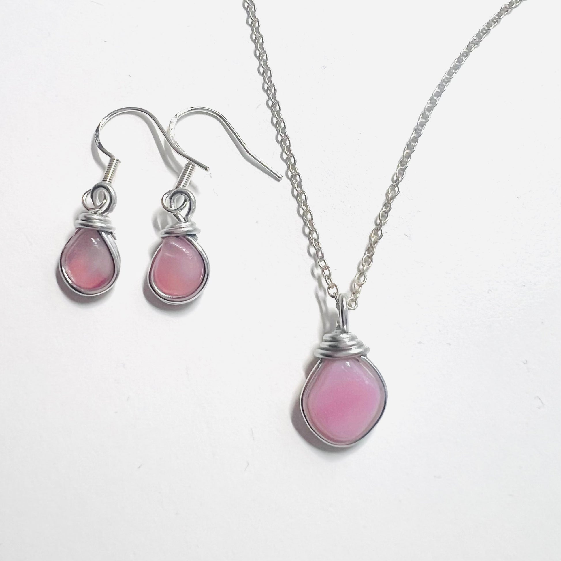 Gorgeous Rare Milky Pink tone Sea Glass Pendant on a 18” Sterling Silver Chain. Matching Sterling Silver Earrings .