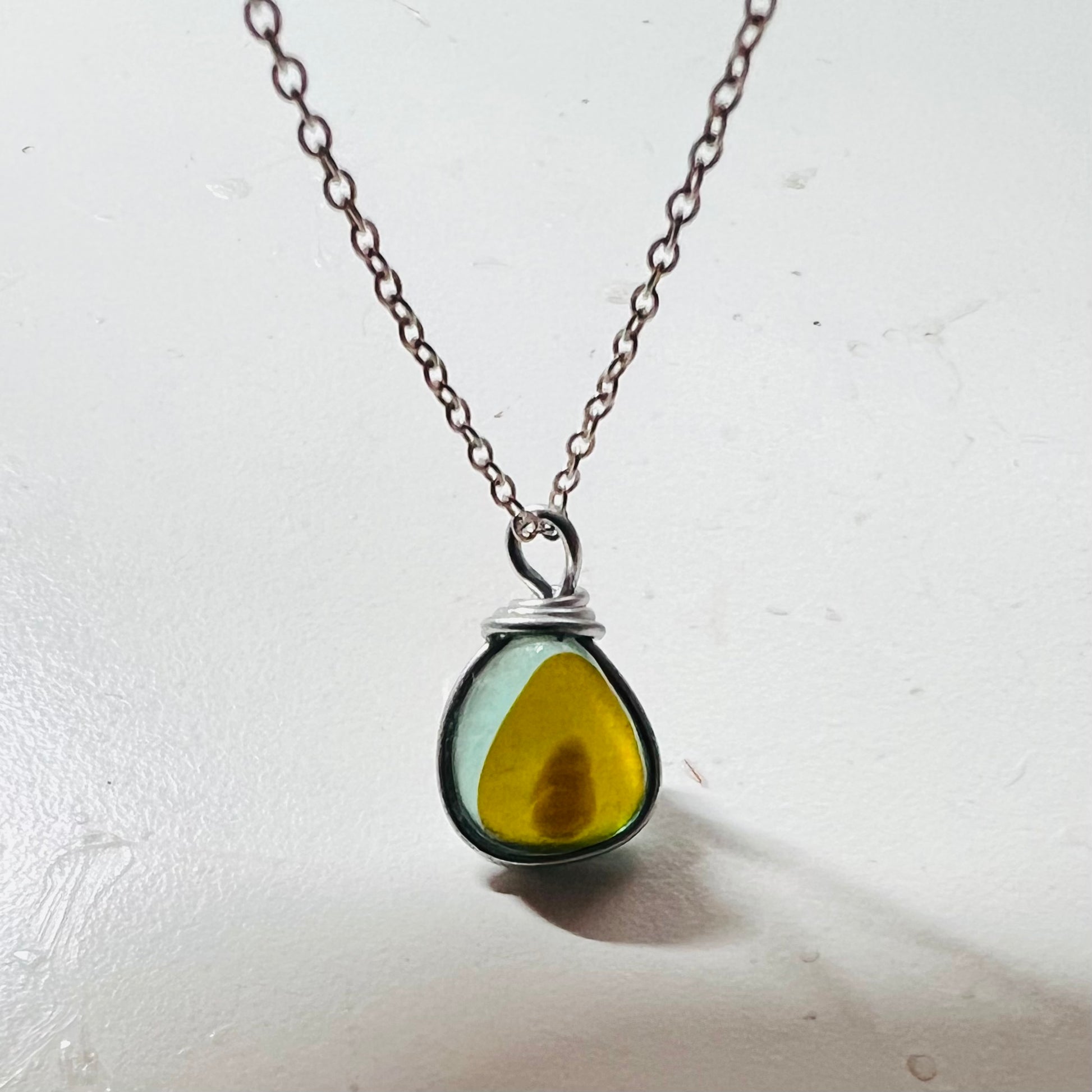 Stunning Seaham Sea Glass Multi Pendant. Handcrafted in wire and set onto an 18” Sterling Silver Chain.