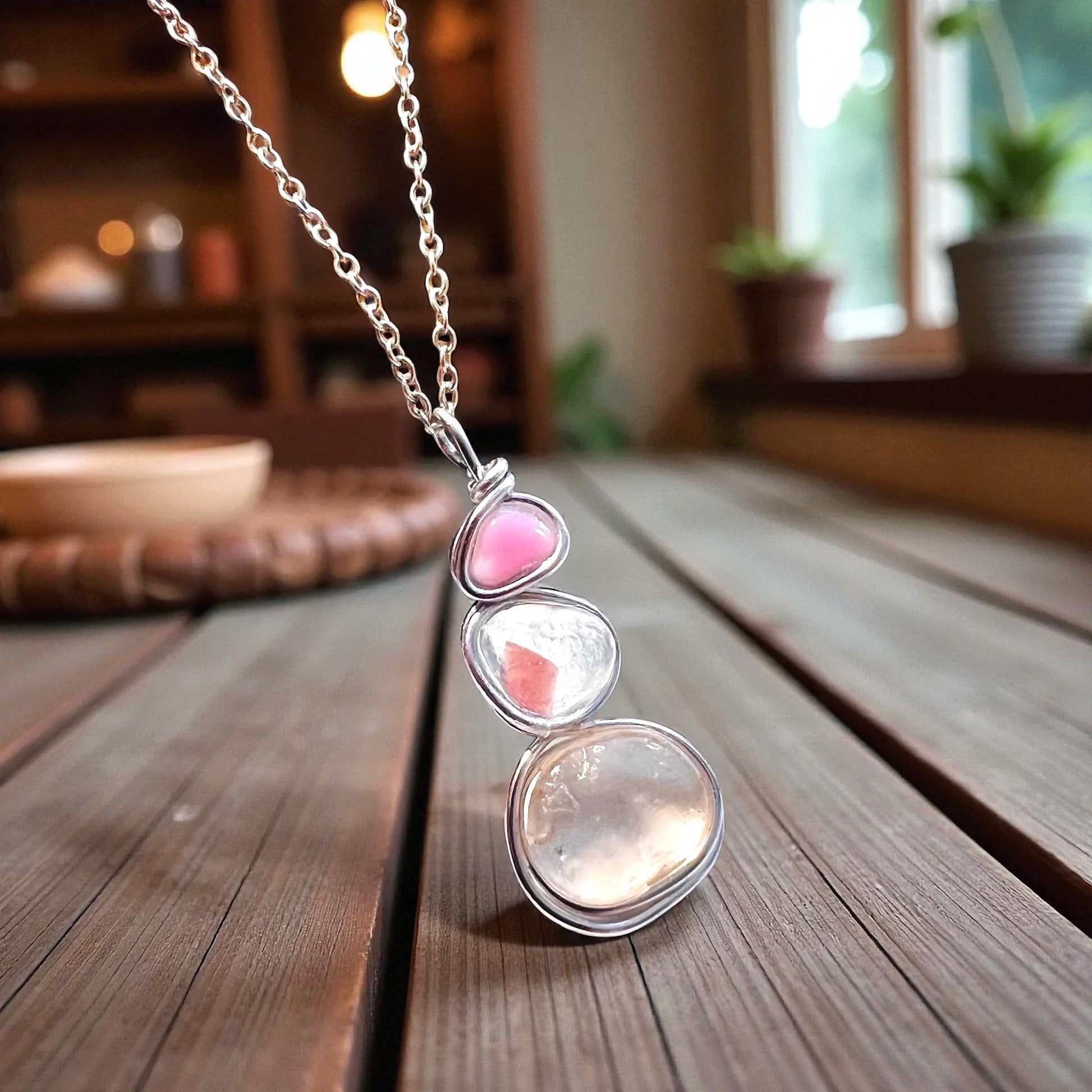 Rare Pink Three Piece Seaham Sea Glass Pendant