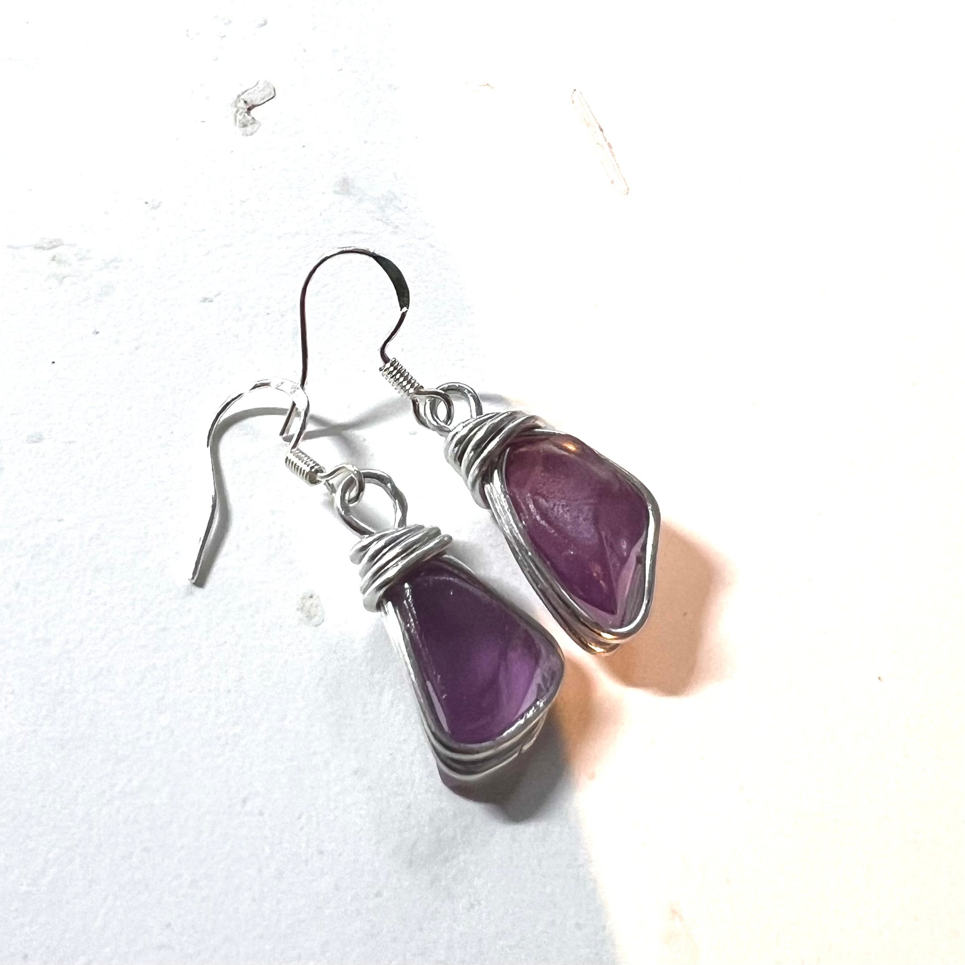 Beautiful patterned Pink Spanish Sea Glass from the Canary Islands. Set onto a Sterling silver hooks.