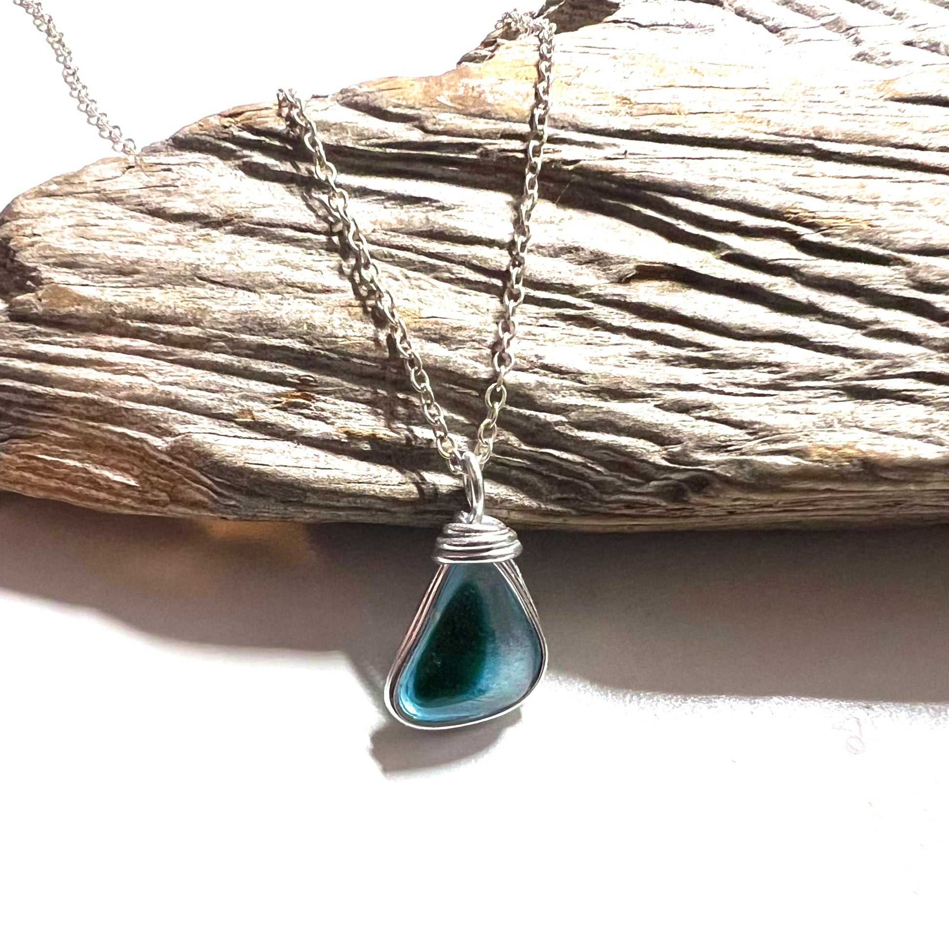 Seaham Sea Glass Blue & Pink Pendant on an 18” Sterling Silver chain.