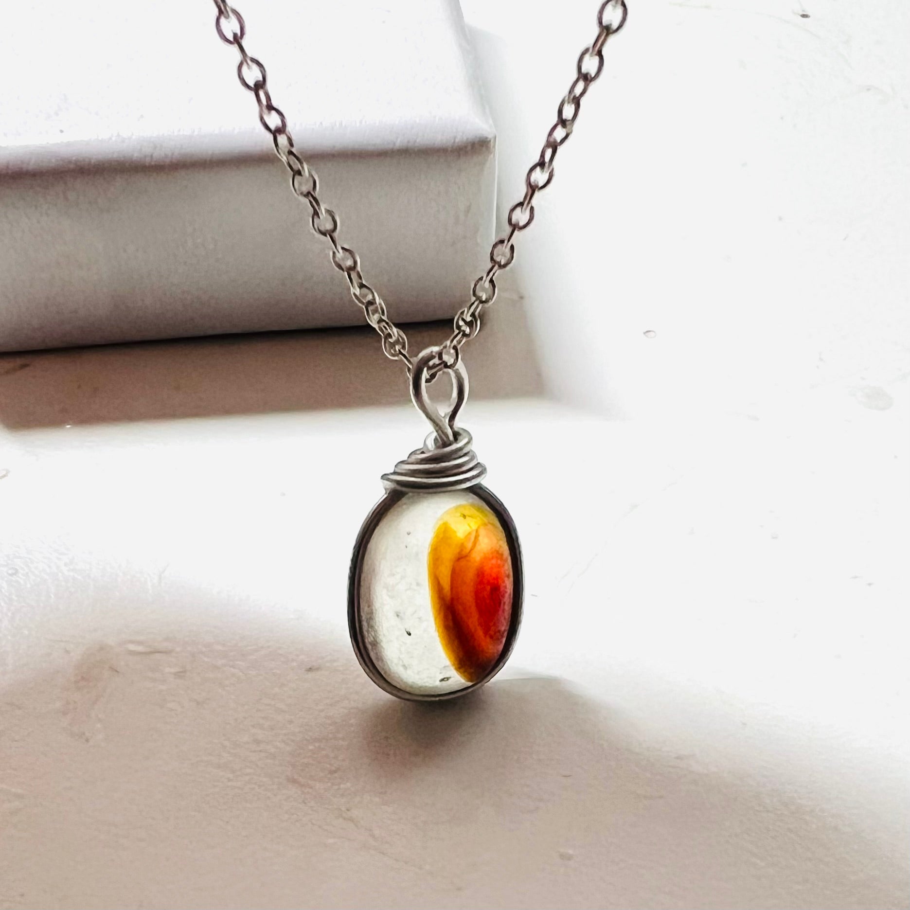 Stunning Seaham Sea Glass Pendant. Handcrafted in wire and set onto a 20” Sterling Silver Chain.