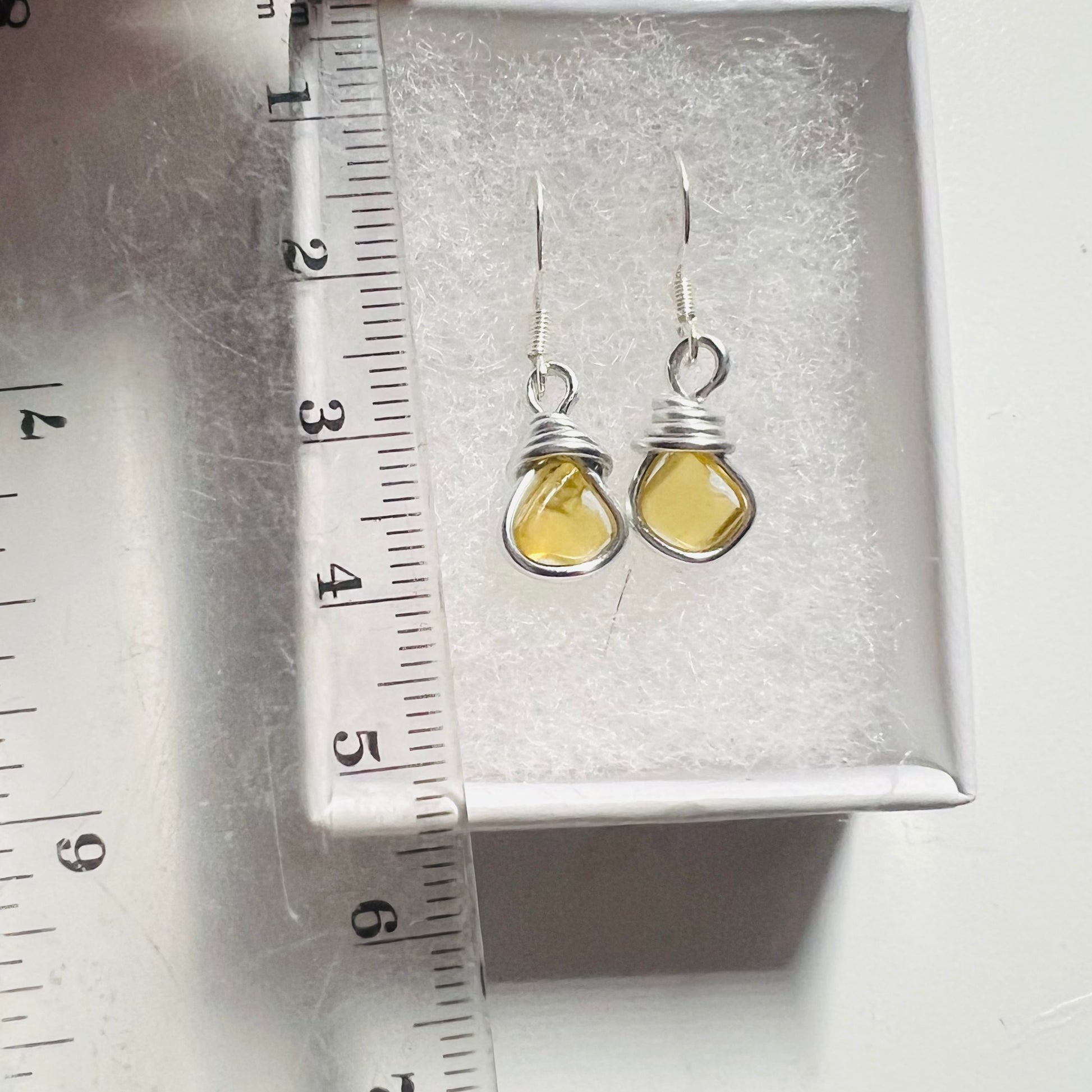 Small Seaham Sea Glass Yellow Earrings on Sterling Silver.