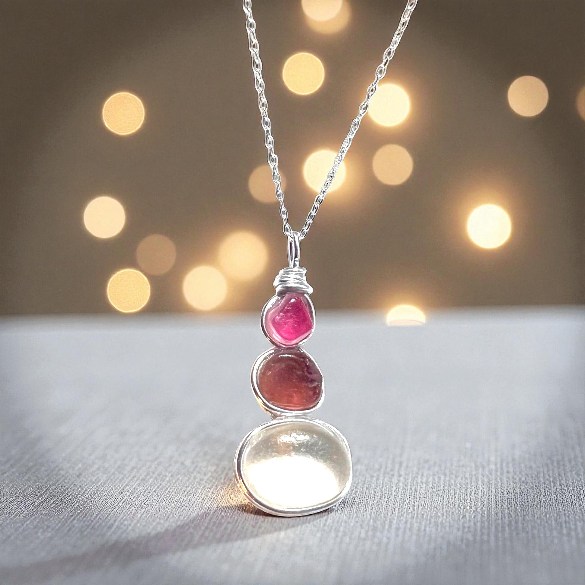 Seaham Sea Glass Three Piece Pendant. Handcrafted in wire and set onto a 18” Sterling Silver chain.