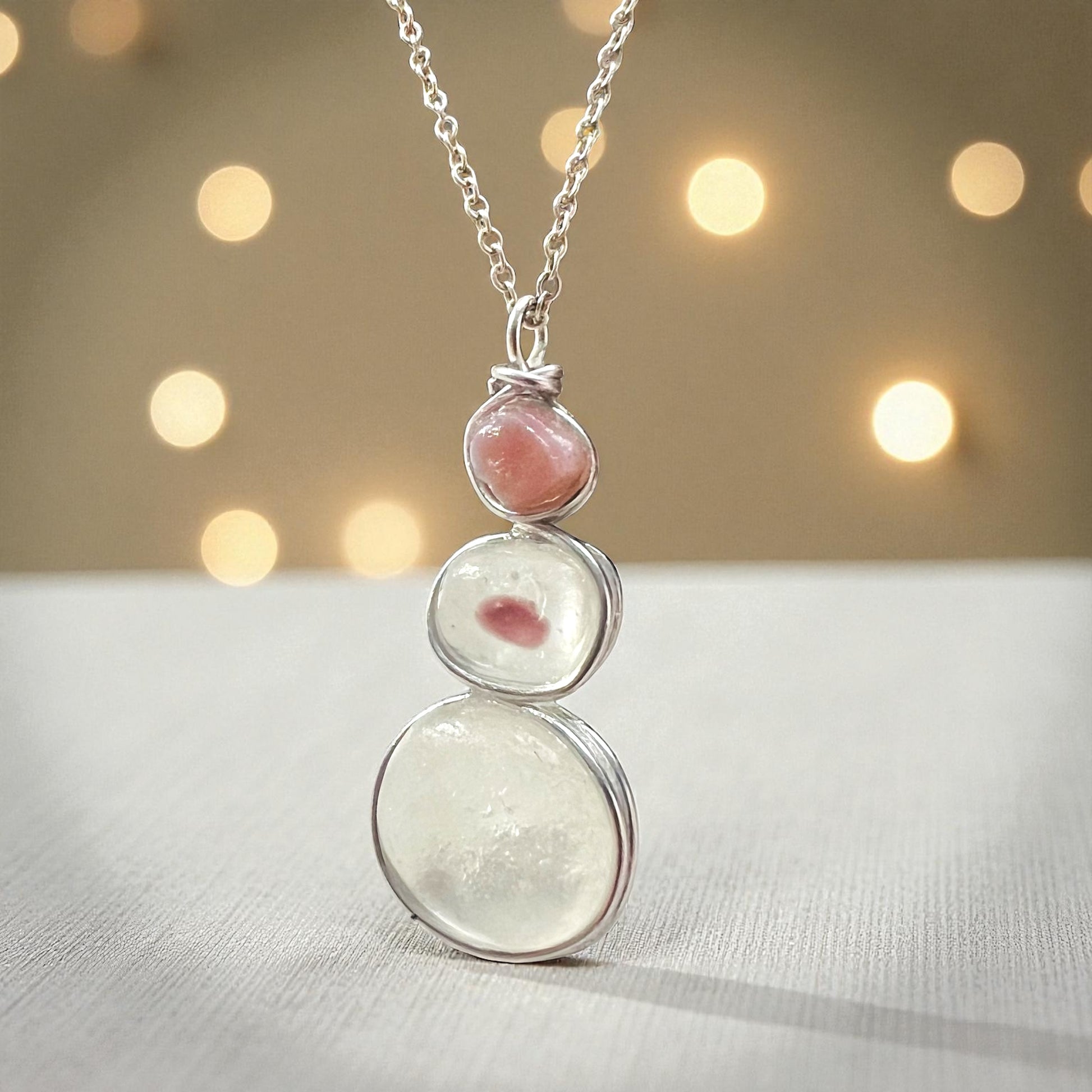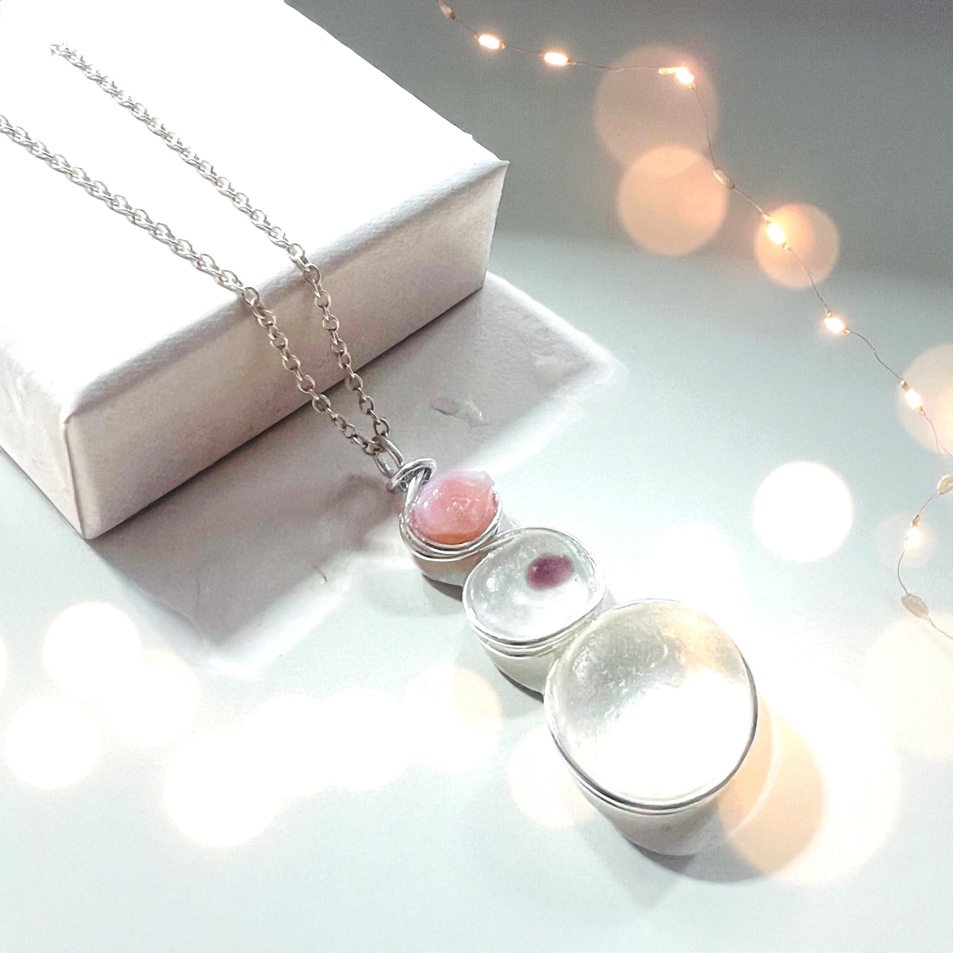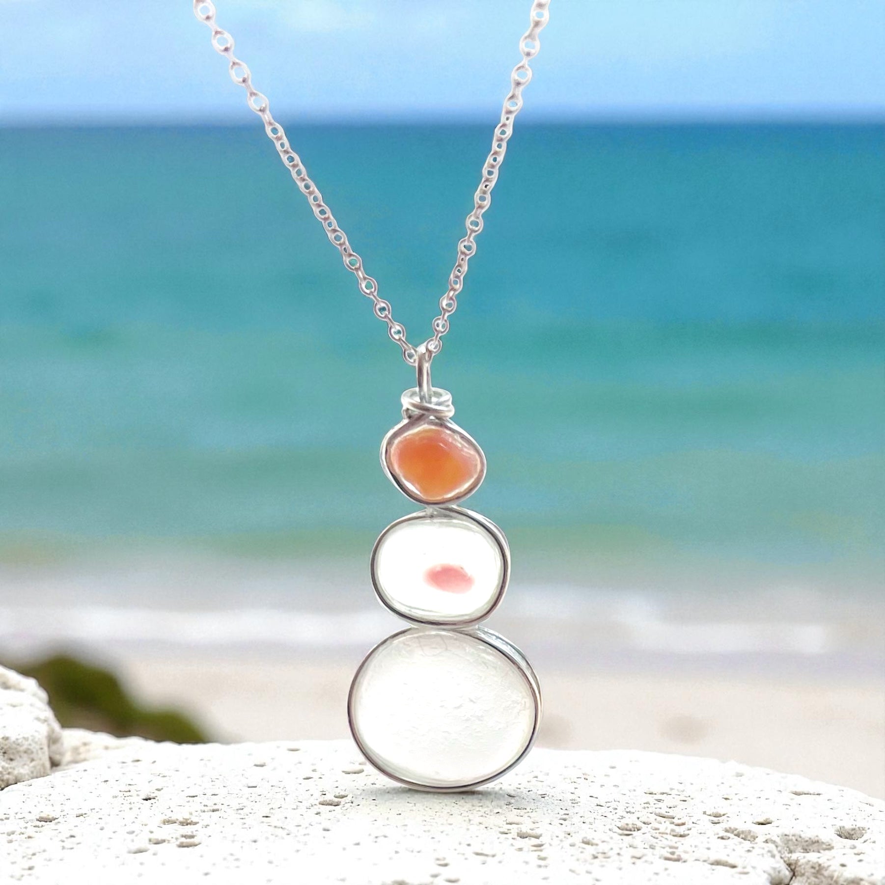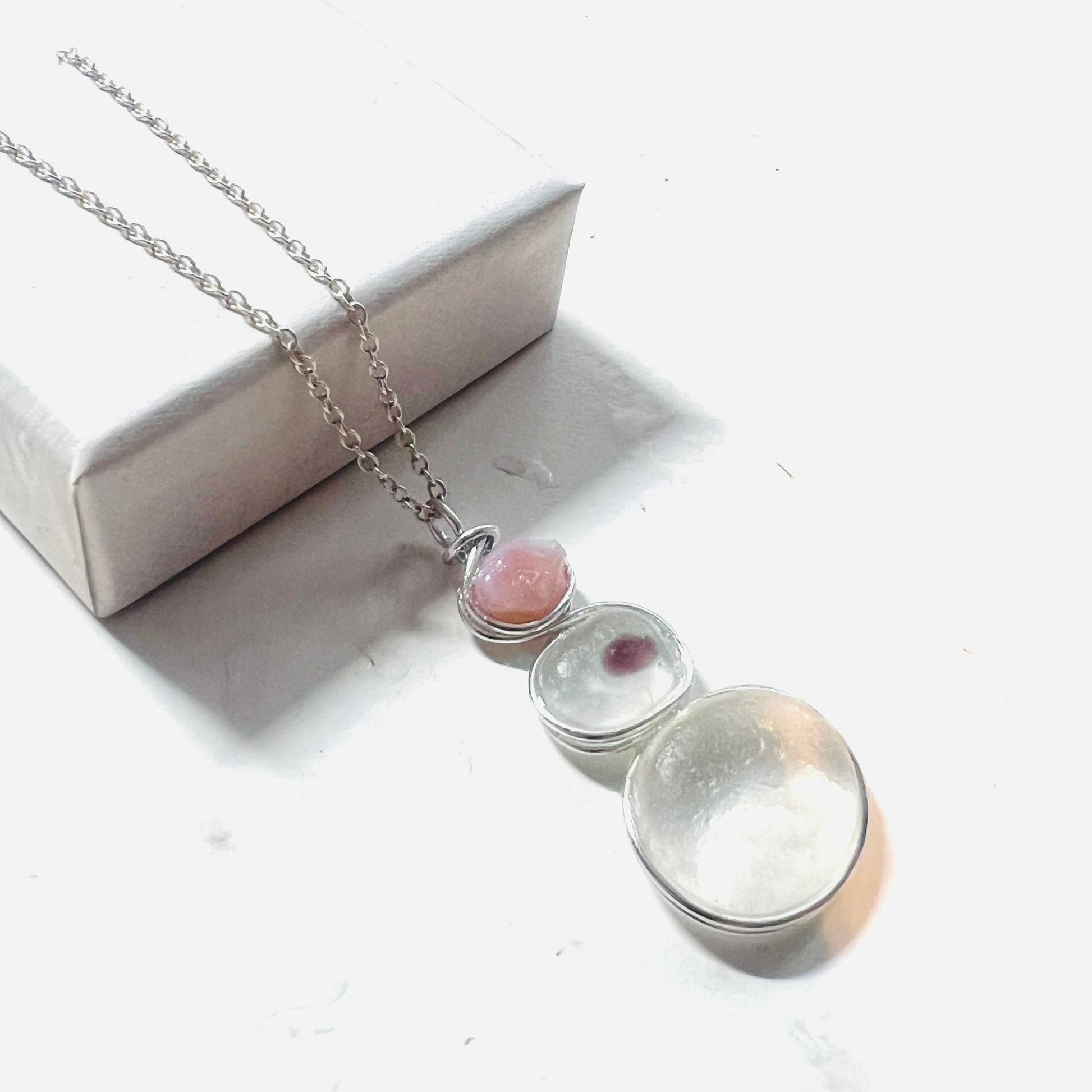 Seaham Sea Glass Three Piece Pendant. Handcrafted in wire and set onto a 18” Sterling Silver chain.