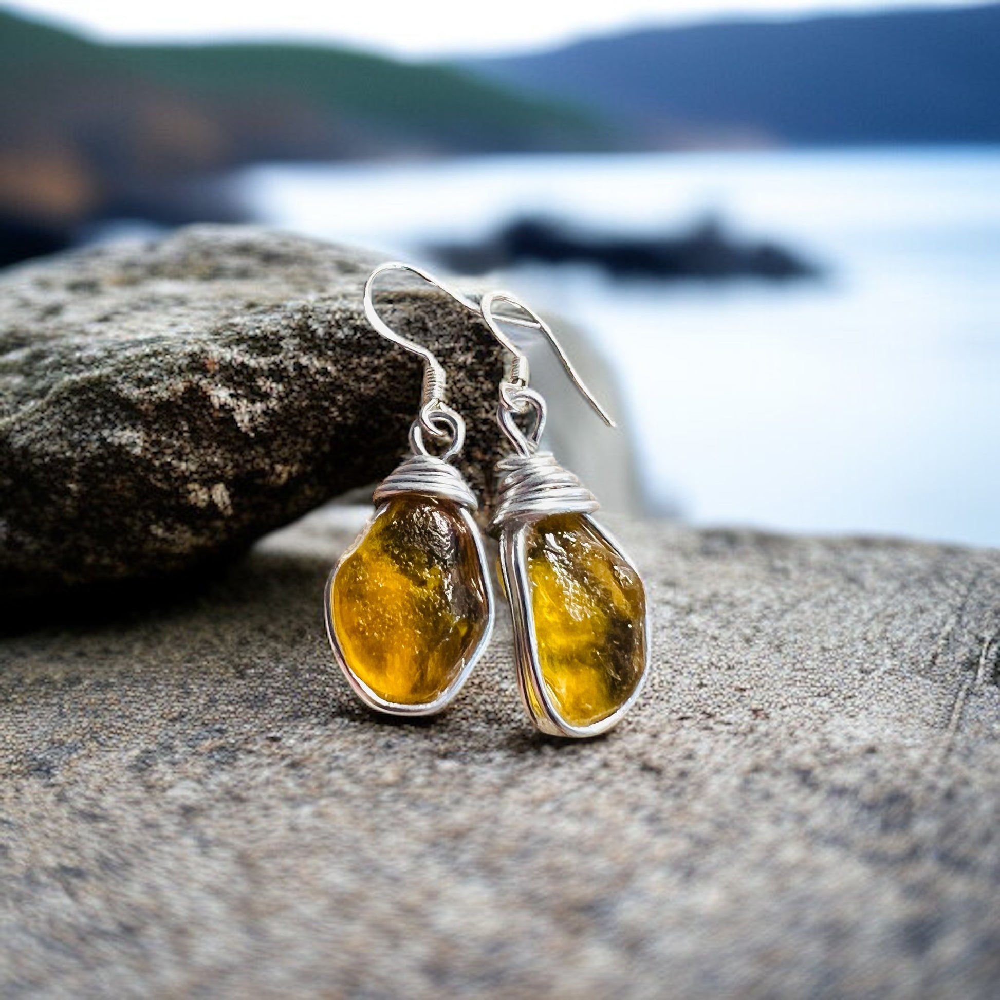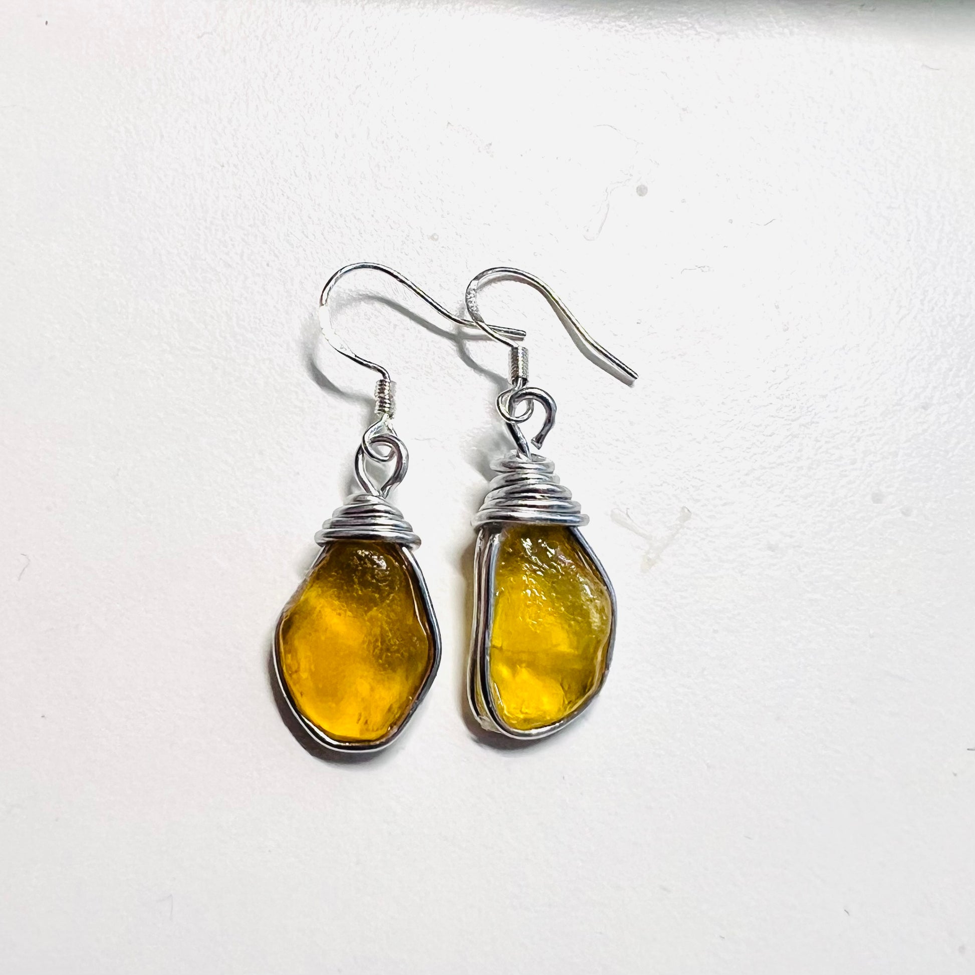 Yellow Sea Glass from Lanzarote. Sea Glass Earrings on Sterling Silver Hooks.